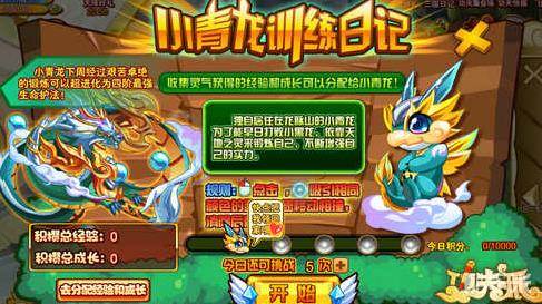 我们玩游戏获得的积分还可领取小青龙的仙兽成长值,当积分达到10000就可以把小青龙抱回家!