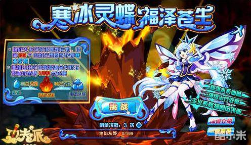 新玩法,元素关卡!功夫派系仙兽寒冰灵蝶可以帮助你抵挡炎热的环境并提升你的伤害哦~快和它一起并肩作战吧!
