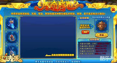 传奇装备,功夫派奇关卡震撼开启,更炫酷的装备,更强力的属性,更多样的选择!通关特定史诗副本打败BOSS有几率掉落罐子,拥有特定罐子(武器、项链、戒指)即可开启熔炉,有机会获得传奇装备哦!
