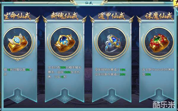 目前“仙戒系统”总共有10个“仙戒”,通关对应层数即可自动激活仙戒被动技能。10大仙戒分别为: