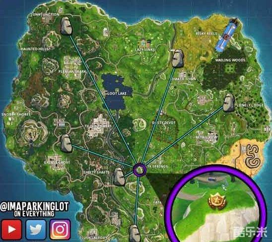 这里的石头其实指的是堡垒之夜地图上的7座人面巨石,每个巨石的朝向汇合处可能就会发现大家想要的星星吧。