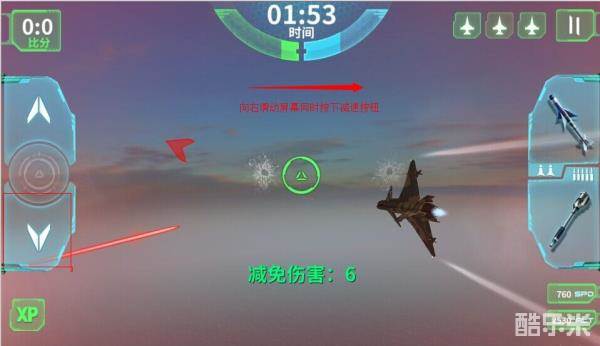 如果敌人的导弹是从你的身后发射的,这个时候我们依然是需要滑动屏幕来躲避,但是要同时按向上加速键。这样躲掉导弹的成功率才能得到保证。