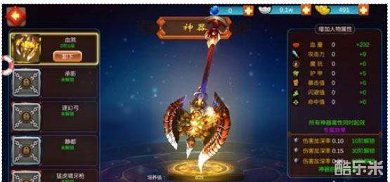 培养可以将神器升级,每10级可进阶,属性显著提升