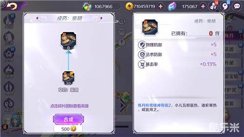 每种完整的药材皆可提供一定量的属性加成效果,玩家只需把药材放入炼丹炉中即可获得相应的属性提升。在药材集齐后,即可开启炼制,让缘神的法力飞涨。