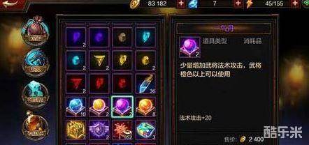 6、无极丹:大量增加武将法术防御,武将橙色以上可以使用。
