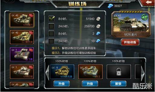 点击强化战车,会切换到训练场界面,在训练场可以为战车升级