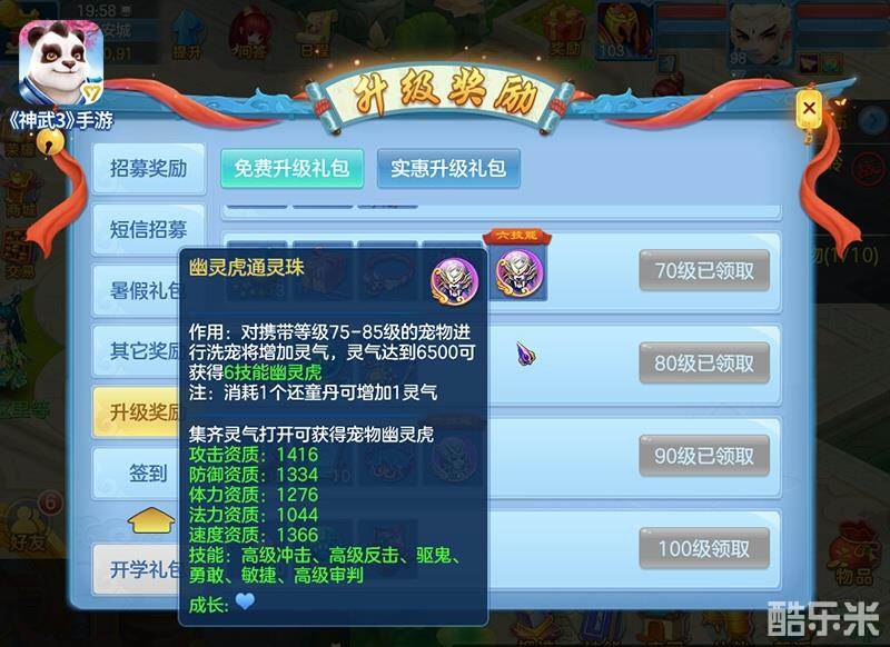 据悉,通过消耗还童丹累积通灵珠进度获得的幽灵虎、龙虾骑士成长为蓝心,初始属性随机,技能在原有基础上增加“高级审判”。本周更新完成后,全新道具通灵珠即正式上线,诸位少侠便登陆游戏、点击“奖励”按钮进入“升级奖励”界面对应的免费升级礼包。需要注意的是,维护前未领取70级、90级免费升级礼包的少侠,在领取礼包时直接多出一个通灵珠道具;而维护前已领取70级、90级免费升级礼包的少侠,领取按钮从灰掉状态变成可领取状态,点击则只能领取通灵珠道具。