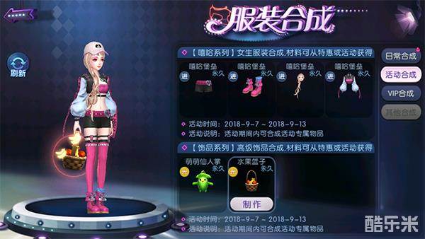 也许是AUer舞动青春的精神和说唱不谋而合,在《劲舞团》手游中,嘻哈系列一直占据重要地位,受到广大AUer的喜爱。本期活动迎来“嘻哈堡垒”系列服装,女装性感的抹胸装扮配上铆钉腰带,金属钢圈的心形标志,充满了叛逆精神;配上灯笼长袖和玫瑰色的大腿袜,又形成了强烈的反差,彰显出俏皮活泼的青春气息。搭配治愈系饰品“水果篮子”,粉色光圈周围,水果形状的淡色光泽不断闪烁,真是萌萌哒~