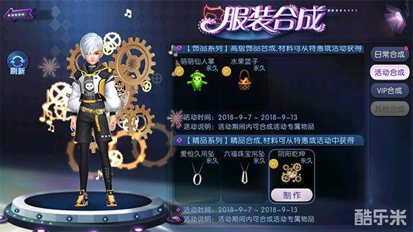 通过“精品合成”还可以获得“阴阳乾坤”饰品,大大小小的金色齿轮连接在一起,顿时就有了中世纪的高贵风格,美丽的音符加上绚烂的光效,酷炫夺目。