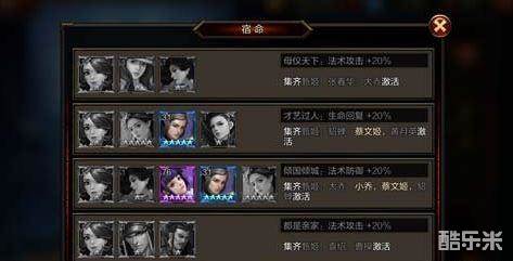 再来看宿命,甄姬的宿命还是蛮多的,四个中有两个是增加法术攻击的,还有法术防御和生命回复。不过不得不说,甄姬的宿命大部分都是女将,并不是特别好收集,而且法攻的那两个虽然武将不多的,但是都不容易收集,这个是对于平民玩家来说的。