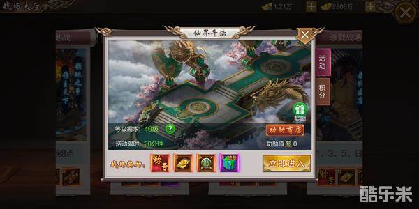 2、参与仙界斗法可以获得积分,在活动结束后,根据活动获得的积分,直接转化为玩家所得的荣誉值;