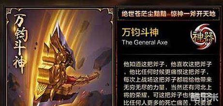 对于万钧斗神有一句话是这么说的那就是绝世苍茫尘黯黯,惊神一斧开天地,短短的二句完美的体现出了武将文丑的专属神器万钧斗神所具有的独有特色和杀伤力,是一股不容小视的力量,所以文丑非常喜爱它的神器,不管是杀敌还是做什么都会一直把它带在身边,每次都可以取得不错的战绩。