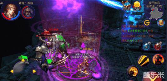 这个图有两个BOSS,BOSS开始的时候会有护盾。根本打不动。然后BOSS图里有一个绿色的,一个紫色的两个祭坛。和BOSS的颜色相对应。把BOSS拉到两个祭坛的中间打。等到哪个祭坛有相对颜色的光柱出来,就把相应颜色的BOSS拉到祭坛上,这样那个BOSS就不会动了,他们的护盾也破了。这样循环两次,就很简单过了。