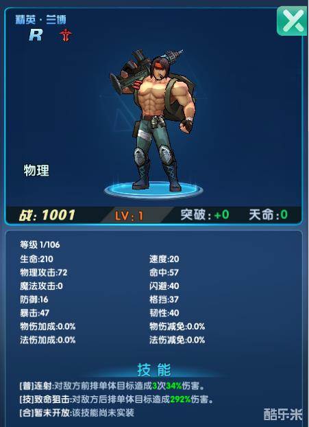 兰博:他的特点是技能可以跨过前排肉盾,对后排单体造成大量伤害。俗话说,擒贼先擒王,如果能快速打倒对方的核心,那就奠定了战斗胜利的基础。