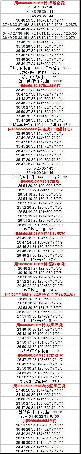 A:很有必要,看数据就可以看出,各缺2.5颗最好石的MM比全满转出来的宠,平均总成长档增幅少了约2.4