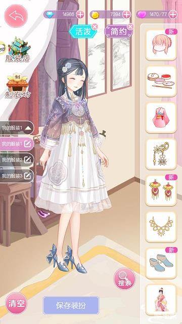 《锦绣奇缘》后期活泼、简约的服饰搭配推荐垂鬟分肖髻、天生丽质、广袖绫鸾衣、弦归、冰蓝幻蝶、乐游春、丹墨翅蝶。这套服饰搭配属性和星级较高,获取较难,适合游戏后期使用。
