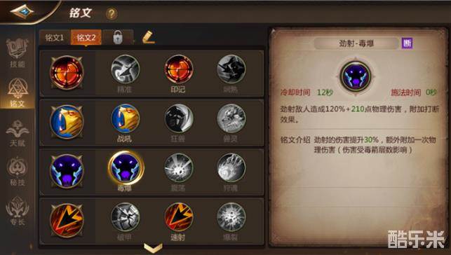 这个打法的特点是,平射伤害比第一种套路要高一些(使用印记铭文或者精准铭文),另外,在为目标叠加了5层毒之后,劲射-毒爆技能的伤害会远远超过劲射-狩魂(劲射-毒爆伤害与毒药层数有关)!