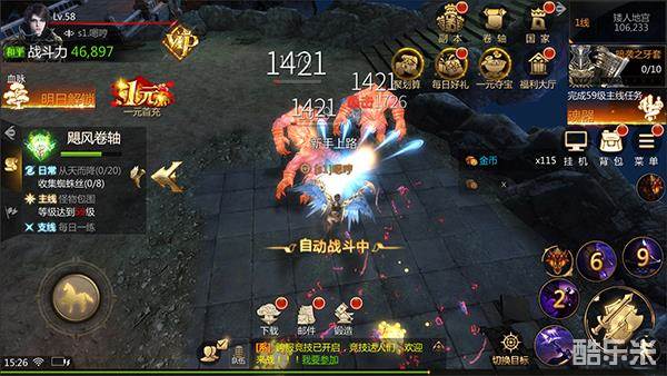 挂机时,主界面会显示“自动战斗中”的提示,如下图: