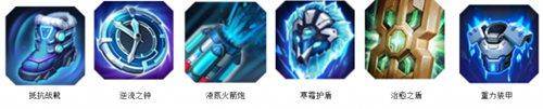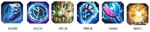 抵抗战靴+逆流之钟+治愈之盾+寒霜护盾+宇宙磁极+镭射核心