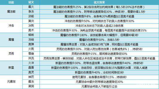 1、烈焰铭文(PVE):魔法箭-霜火、冲击-冥炎、魔爆-熔岩、灵雨-火雨、新星-火冲、元素球-神罚