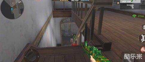 阁楼的楼梯口是一个不错的蹲人点,这里推荐大家使用散弹枪、步枪或者狙击枪也可以,这个位置能轻松监控小门的动静,小伙伴们在这里蹲着可以趁其不备快速输出,如果没有第一时间打死敌人也可以后退转点,避免被针对。