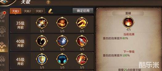 2、破敌天赋(PVP):重击-破甲、冲撞-蛮横、重劈-怒斩、裂刃-破竹、践踏-裂痕、竖盾-狂暴