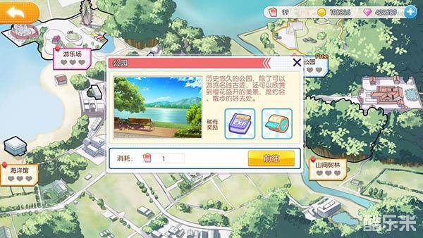 游戏中目前共有6个地点开放约会,包括公园、山间树林、海洋馆、商店街、游乐场、酒吧。当然,不同的地点花费也是不同的。其实也好理解,去小树林和去商店街,心情是完全不同的嘛,你懂得!