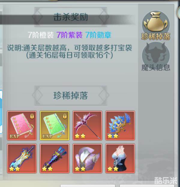 副本掉落:7阶橙装、7阶紫装、7阶红装、高级经验书。