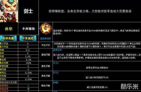 孙坚的作用就是前排击飞目标使其昏迷,为后排创造输出机会,同时还能减敌方怒气值,使其放不出技能,本身生存能力还不错,有一定的减攻和减伤效果。