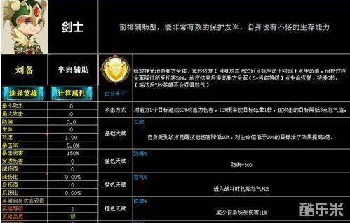 最后编辑于7年前刘备是三国时蜀国的创立者,一生漂泊,以仁义行天下,留下一世美名。而在锤子三国游戏中刘备的职业剑士,属于前排辅助型武将,能够非常有效的保护友军,本身也比较肉,可以为团队创造很好的输出环境和能力,下面我们就详细了解一下游戏中刘备的武将技能和天赋吧。