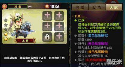 最后编辑于7年前全民神将中刘备属于前排辅助型英雄,大招能够为友方大幅回血并减少一半所受的伤害,效果确实不错,但这款游戏中并不缺乏前排,可以说比刘备强的前排英雄还有很多,那么我们为什么还要上场刘备,还要专门为他搭配阵容呢,这就要从刘备的天赋说起了。。。