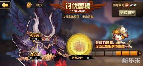 全民神将在军团中有讨伐曹操玩法,每天由军团的团长和副团长来宣战,诸侯宣战完成后,玩家在规定时间内就可以进行攻打曹操的活动了,玩家的总战力越高,攻击曹操获得的虎符就越多,免费次数用还能用钻石购买,那么是不是我们攻击的越多越好呢,这里要告诉大家并不是这样的。