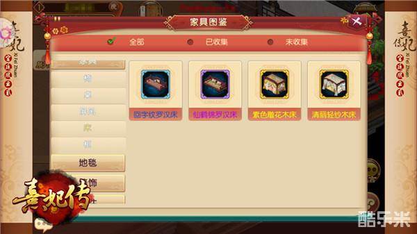 小主们首先需要了解的是“布置”与“打造”这两个功能。“打造”为建造家具之处,小主们可根据自己的官品,使用不同数量的红木与家具图纸来建造你想要的家具。而“布置”功能则是将已有的家具,随心布置在屋内,使原本空无一物的房间焕然一新。除了“打造”之外,家具还可通过购买途径直接获得。不论是打造所得还是购买所得,每个家具都带有繁荣值,将其放置进屋内会增加家园整体的繁荣值。当家园达到了一定繁荣值后,就会激活对应的宫斗属性加成。