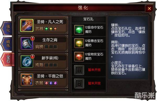 先打攻击和生命宝石,其他孔用副本宝石代替,有钱可以直接商城买3级或6级宝石都行。然后左边装备攻击、暴击、命中,右边生命、物防、魔防(或闪避)。副本掉落的1级宝石先别急放炼金去合成,3颗同种宝石升一级等到9颗再去合成,节省仓库空间。
