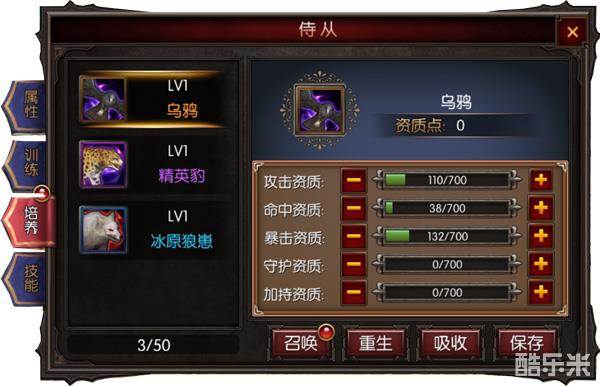 最好用橙色的没有就紫色代替,训练书留给橙色伙伴用,侍从技能分兽类人类,兽类伙伴技能通用,人类伙伴技能通用;资质点先加攻击(或守护,加持),反之加持、守护、攻击,其余先不加。