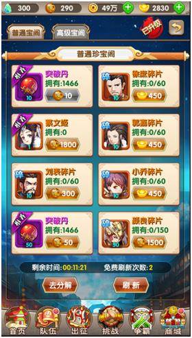 玩家也可以在珍宝阁内购买自己所需要的武将碎片,通过凑齐碎片合成所希望拥有的武将。