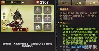 马岱这个英雄之所以有那么多人用,也和他的基础天赋有关。火矢大大的增加了队伍弓箭手的伤害。再搭配周瑜的被动草木皆兵,可以说是挑战副本的不二选择。