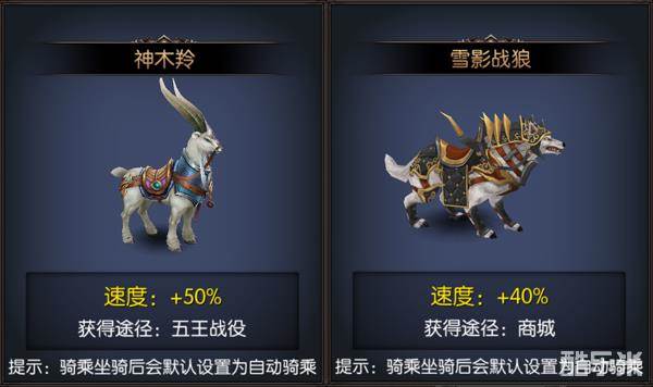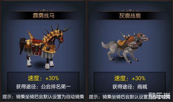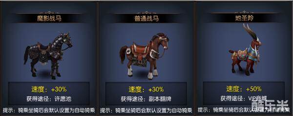 1.普通战马:副本翻牌获得,提升30%移动速度