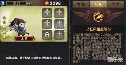 全民神将中邓艾是一个刚出的全新英雄,不仅武将形象萌萌哒,造型更是潇洒炫酷。然而这些都还不是重点,最重要的是他的武将技能特别霸道,减怒效果特别明显,这就让邓艾不仅仅是个耐看的花瓶,更是价值连城,举世无双的武将伙伴,相信不少玩家都已经心仪已久了吧,所以今天就为大家带来邓艾武将技能效果分析。