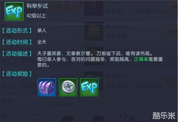 3、完成科举乡试10个答题,将获得10个活跃度;