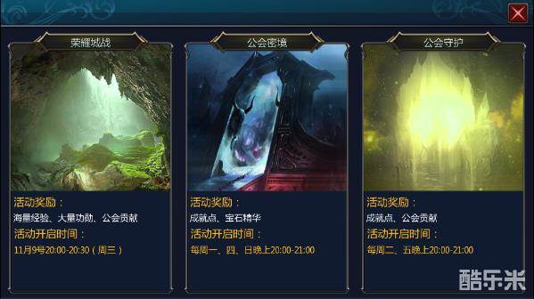 每天晚上都会有充满激情的公会活动,参加不同的公会活动可获得不同的丰厚奖励