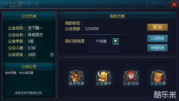 2 玩家可向公会捐献绑金、钻石、装备,捐献可获得个人贡献度