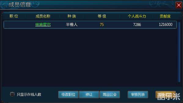 6 公会会员可在成员列表进行各种操作:选择单个玩家之后弹出下拉框,然后选择项目操作。