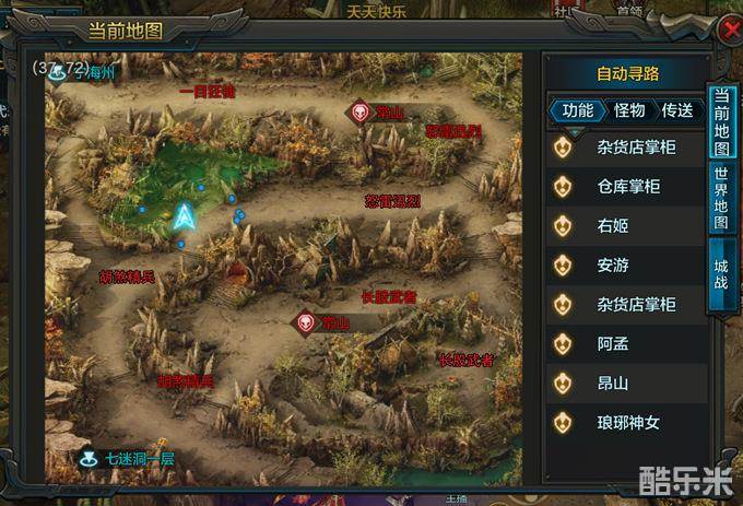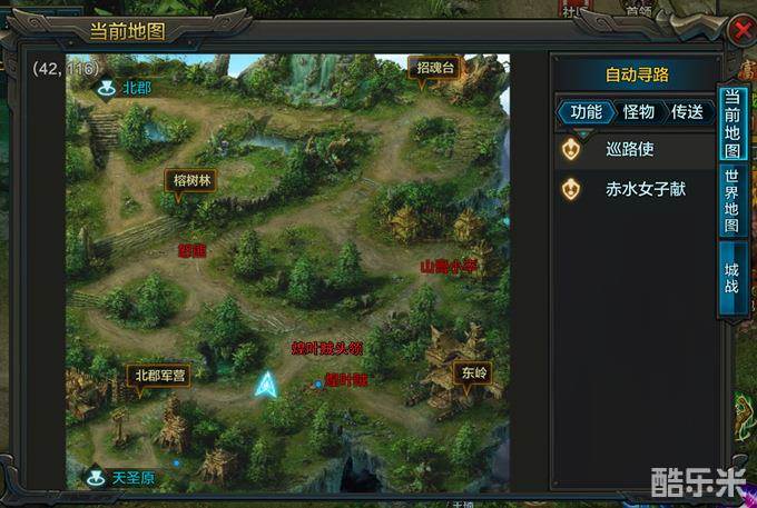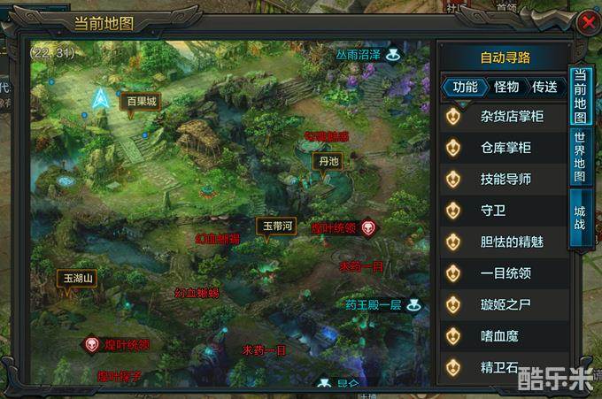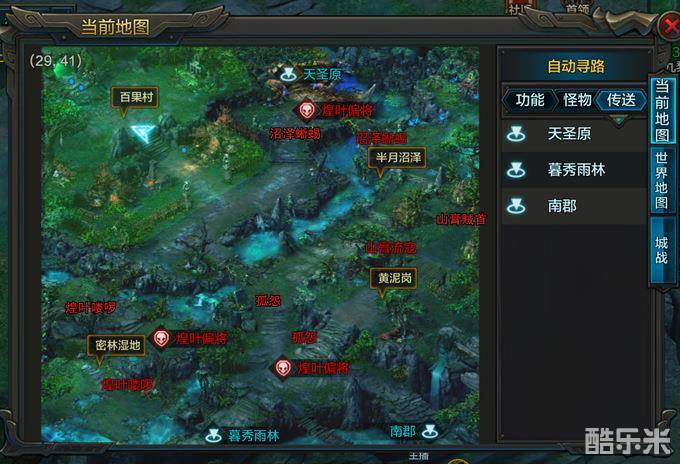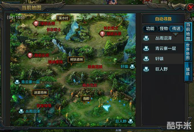 南郡(31-36级):铁掌熊怪31级、吸血花妖32级、长右武士33级、绿依寨民36级、绿依头领(BOSS)
