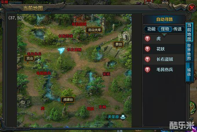天圣原郊外(12-18级):虎12级、花妖13级、花精16级、毛民伤兵15级、长右盗贼16级、长股恶徒18级