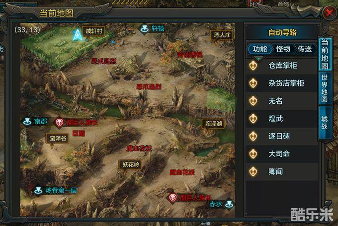 北郡郊外(8-12级):山膏小卒8级、怒熊8级、煌叶贼12级、煌叶贼头领12级