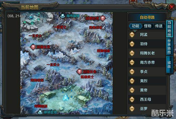 昆仑(100-108级):翔舞暗探102级、翔舞刺客100级、延维武士108级、一目武士104级、延维长老(BOSS)