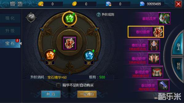角色65级时可以激活生命宝石、物防宝石、魔防宝石