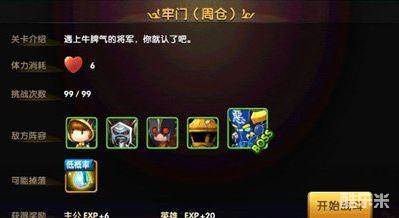 至于boss周仓的打法,下面建议大家不要选太过脆皮的后排弓箭手,因为很容易被周仓弹死。武将阵容可以这样选择,凌统,辛妈,小乔,周瑜,主角,这样的阵容有输出有续航,就不怕周仓的大招了。