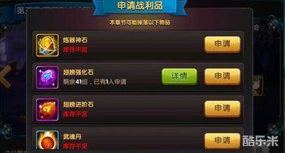 首先玩家需要进入军团副本,进入已经通关的区域,点击进入副本。这里面可以进行沙场敌兵战斗、查看排行以及战利品的操作,点击战利品就可以看到军团所获得的所有奖励物品了,玩家看上哪一个,只需要点击申请即可,不过需要团长批准才行哦。